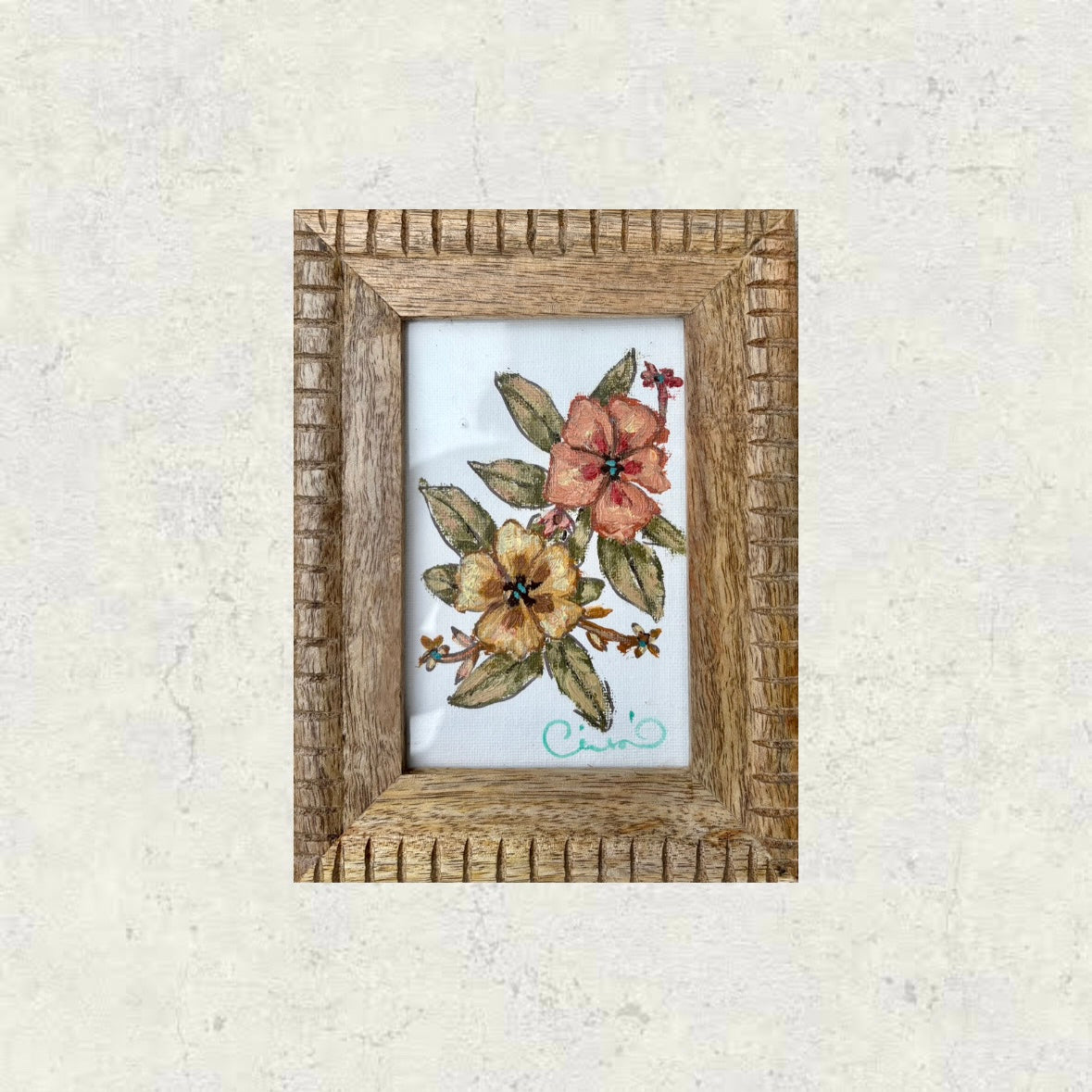 indian made frame + glass + signed